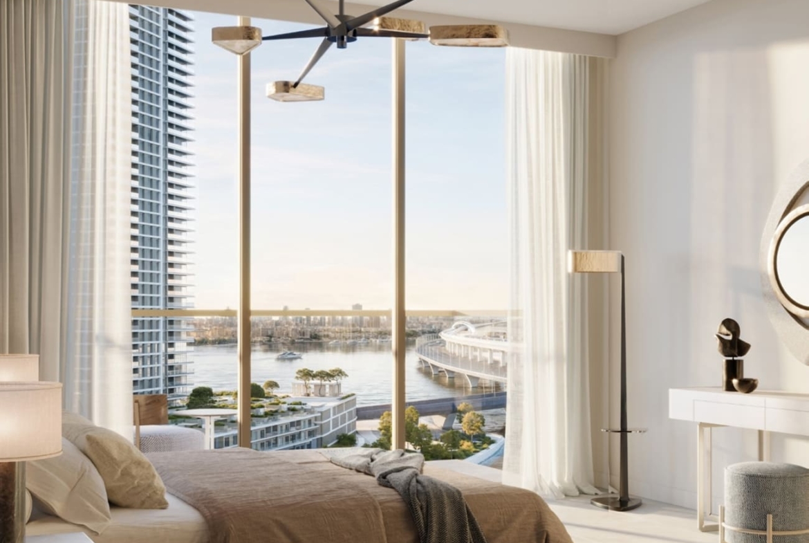 The architectural design is a harmonious blend of sleek, modern lines and natural elements, reflecting its unique environment. Expansive windows and private balconies extend living spaces into the picturesque outdoors, offering residents stunning views of the historic Dubai Creek. Sophisticated fixtures and finishes are standard in every unit, from the kitchens to the bedrooms and bathrooms, ensuring that every detail is meticulously crafted to enhance the living experience.