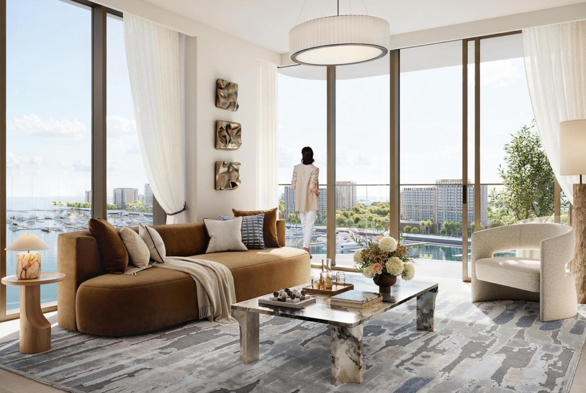 Inside, each residence is thoughtfully crafted to reflect understated elegance and modern comfort. The apartments are designed with open layouts that invite natural light, offering tranquil views of the water and skyline. Refined finishes, carefully selected textures, and a neutral palette create a warm, inviting atmosphere where every detail contributes to a sense of calm sophistication.