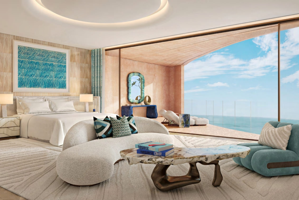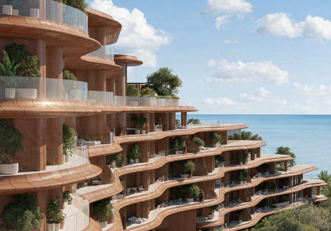 The architectural brilliance creates its distinctive character by forming a design directly out of the land instead of the characteristic tall Dubai skyscrapers. The architectural composition combines modern lines with untouched nature as two hills preserve this masterpiece between them. The residences integrate flawlessly into their environment through facades that resemble moving like sand dunes and restless ocean waves. Rich valleys contain walking paths that display magnificent seaside outlooks as well as concealed oceanfront areas. Every material selected including stones, glass and wood serves as an essential part in creating perfect structural unity with both architecture and its environment.