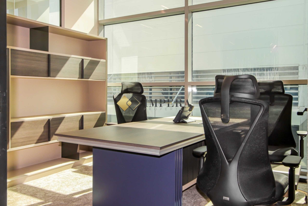 Impera Properties is proud to offer this exquisite and luxurious office located in the world-famous DWTC area. This fully furnished office merges productivity with luxury and offers smart technology furniture, floor-to-ceiling windows, and many other premium features and amenities.