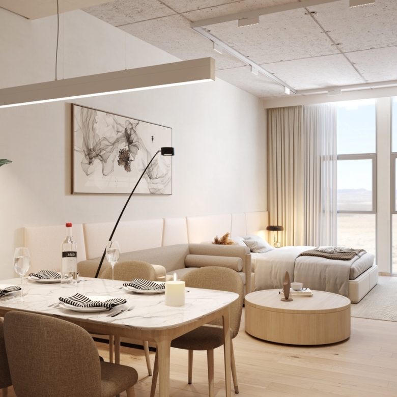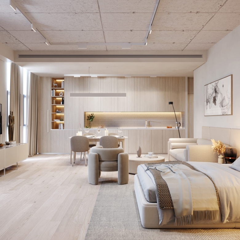 The architecture of the building reflects practicality in its sincerest, most beautiful form. With its distinctive L-shape main structure the project supports high-class living standards. MAG 330 was designed for maximum comfort and style with impeccable interiors, and a host of amenities; including swimming pool and its very own health club. The spacious one, two, and three- bedroom apartments offer high-end living standards complemented with the finest finishes.