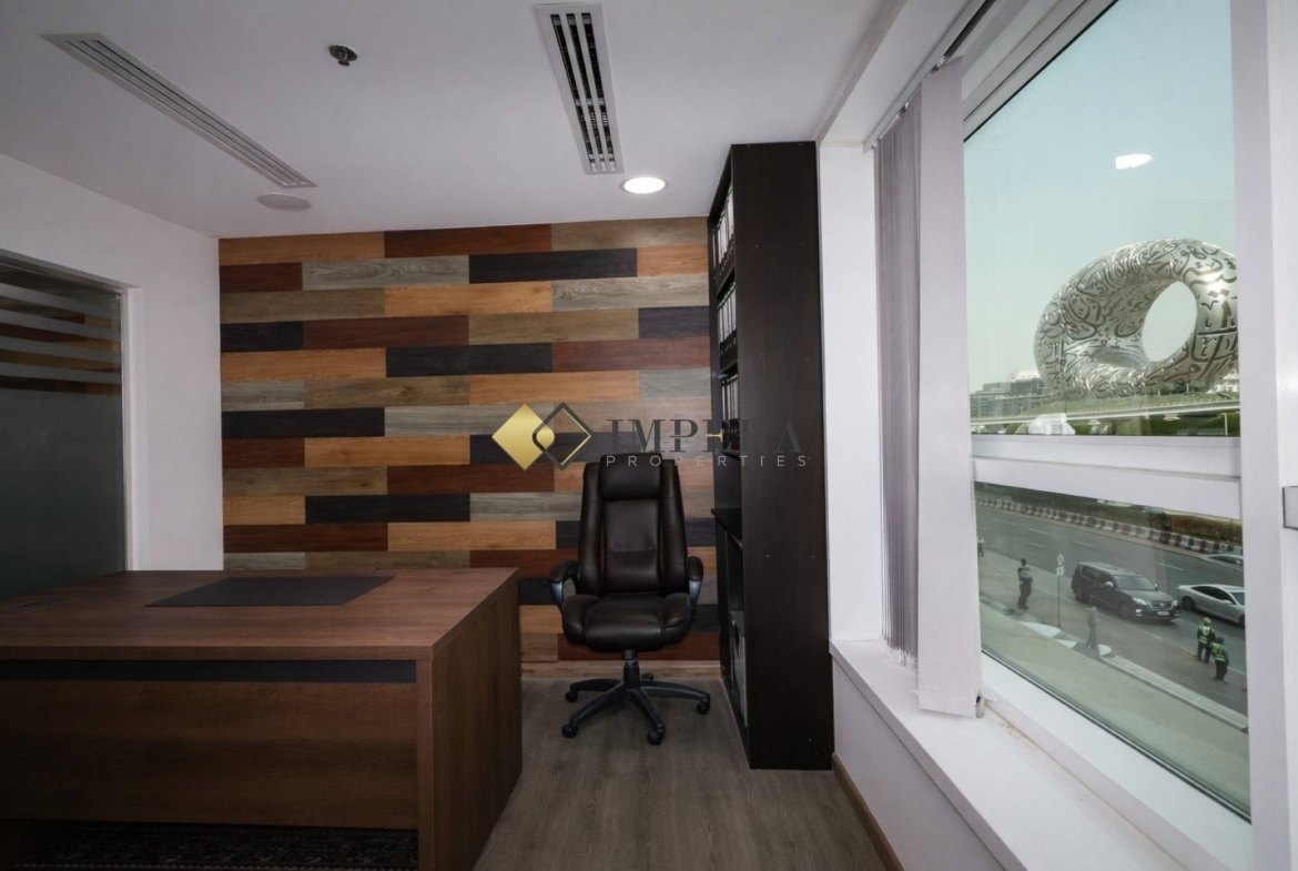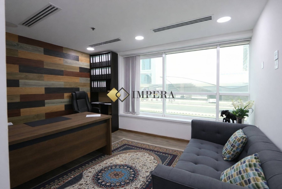 Position your business on Sheikh Zayed Road with this fully fitted and furnished private office in Millennium Executive Tower. This is a dedicated office space , offering full privacy, independence, and a prestigious address with direct metro access and stunning views of Museum of Future.