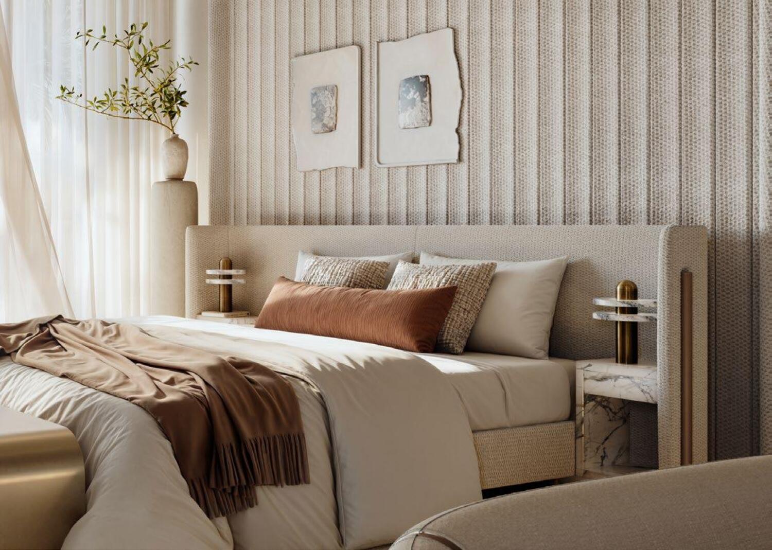 The collection features a series of exquisitely designed four-bedroom villas that reflect understated grandeur and effortless comfort. Each home is sculpted with contemporary geometry and earth-toned palettes, seamlessly flowing from indoors to outdoor terraces. Interiors are enriched with natural textures — stone, timber, and soft lighting — that create a calm, expressive environment.