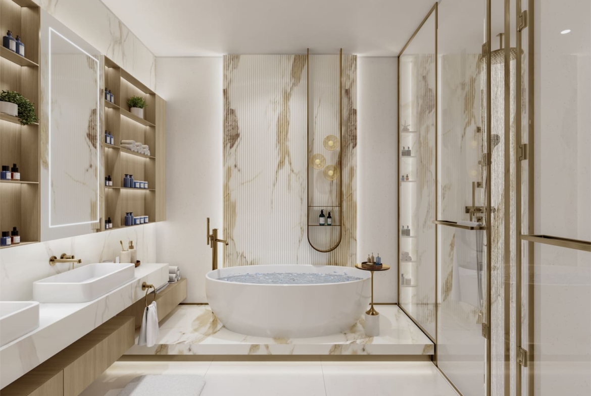 Sunset Bay 5 represents an exclusive residential project that redefines contemporary waterfront living. With only 62 apartments in total, the development emphasizes privacy, exclusivity, and thoughtful design. The residences are offered in one-, two-, and three-bedroom layouts, each featuring generous living spaces starting from 965 sq. ft. and extending beyond 2,000 sq. ft., fully furnished with premium finishes and interiors crafted by renowned design specialists.